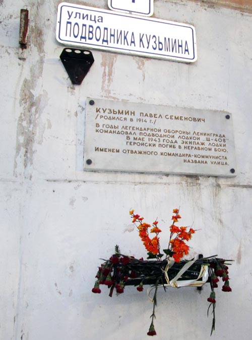 В Ленинграде, от набережной которого ушла эта подводная лодка в свой последний поход, есть теперь в Кировском районе, за Нарвской заставой, улица Подводника Кузьмина с мемориальной доской на угловом доме, напоминающей о том, что совершили молодой командир и его героический экипаж во славу Родины, во имя грядущей Победы.